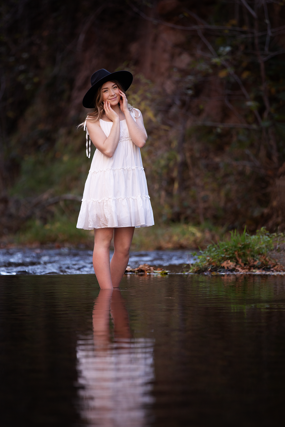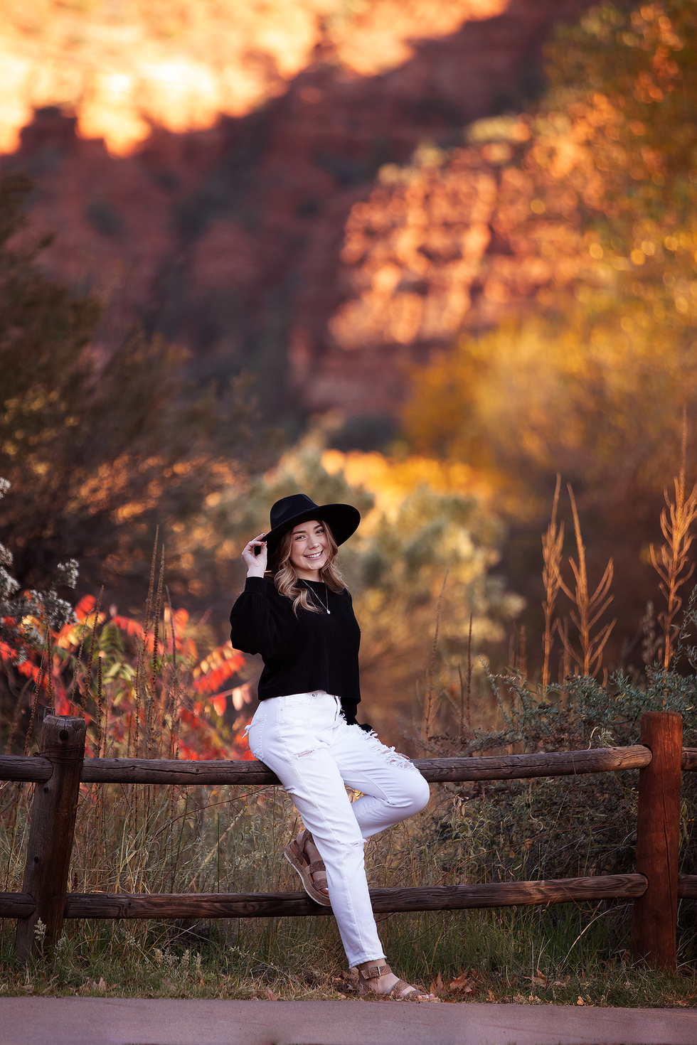 When Kayla asked about a senior session, we both knew we should travel to Sedona for it! As a Kingman Arizona Photographer I have done numerus sessions in Sedona, so I knew exactly where to go. We decided to make an entire day of it and hit all the good locations while we were there. We started out at this amazing hiking trail where you can view the amazing red and pink rocks of Sedona, and then traveled back to a different park where we found the best bridge! Of course, we had to go under the bridge...Ya know...because why not?! That water was freeeeezing but I think the shots we got were worth it!